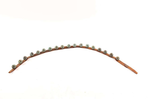 Description This is a string of 18 antique brass sleigh bells still on the original leather strap. The bells measures about 1 1/4" each in size and the leather strap measures about 45" in length. Circa Early 1900s