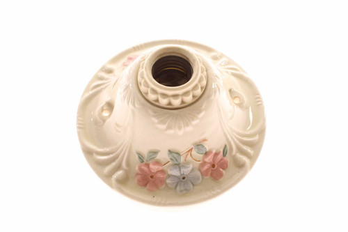 This nice antique Porcelier porcelain ceramic flowered ceiling light fixture measures 6" in diameter and needs a pull chain.