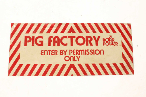 Description This vintage Boar Power Pig Factory enter by permission only tin advertising sign measures 14" x 6" in size.