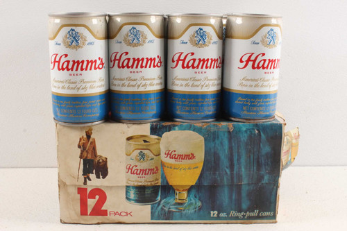This vintage Hamm's beer 12 pack of pull tab cans comes with its worn original box.