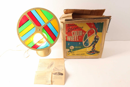 This vintage Spartus rotating Christmas tree color wheel comes with the original box and instructions. The light works but when you flip the switch i do not here the motor running so it will need worked on and a couple plastic wheel lenses have a little wear.